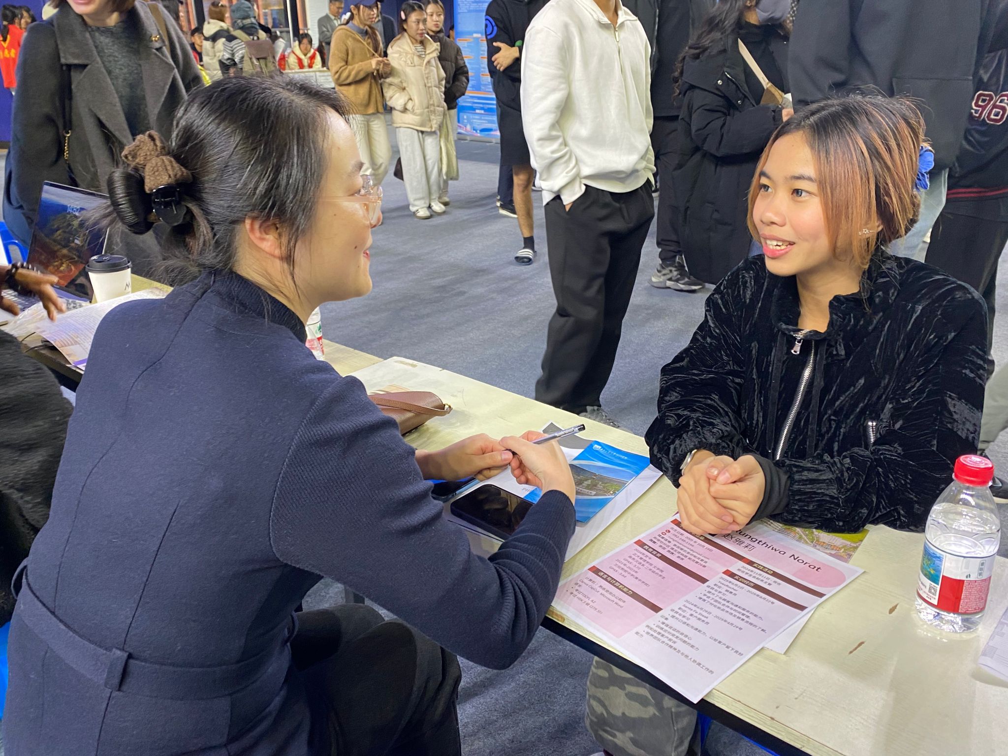 招聘会现场气氛热烈,秩序井然。涵盖新能源、高端制造、国际贸易、跨境电商及现代服务业等多个领域的侨企提供了大量贴近留学生专业背景和“一带一路”国家市场需求的岗位。我校留学生准备充分,带着精心制作的简历,积极与心仪企业的招聘代表进行面对面交流,详细了解岗位要求、职业发展前景及企业文化。许多企业代表对我校留学生展现出的扎实专业技能和跨文化沟通能力表示赞赏,互动环节深入而富有成效。部分学生甚至在现场就与用人单位达成了初步的实习或就业意向,收获颇丰。