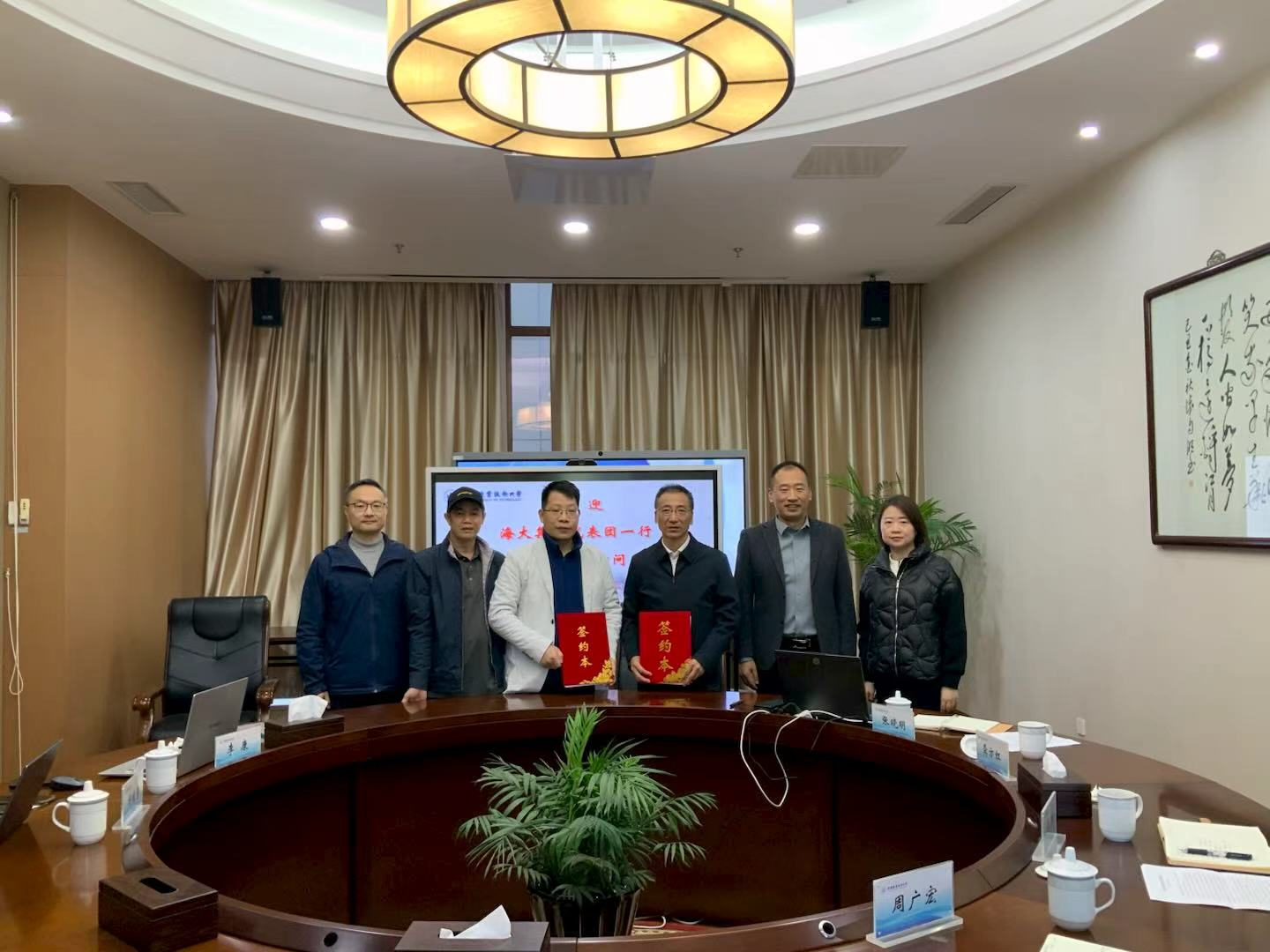 On November 26, a delegation from Haid Group Co., Ltd. conducted an official visit to WXUT. The delegation was led by Yang Jingyong, Head of Human Resources, and included Li Kang, Head of Production for the Indonesian Region. The visit was hosted by Secretary of the Party Committee Gong Fanghong, with participation from officials of the International Exchange and Cooperation Office and the School of Control Engineering.